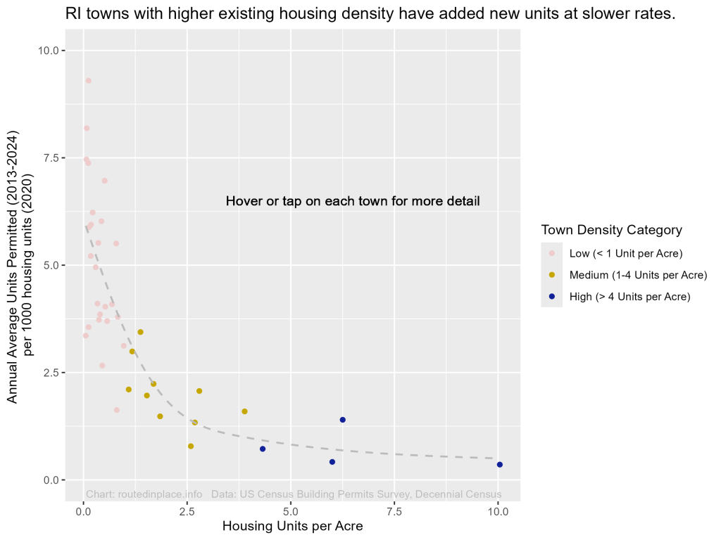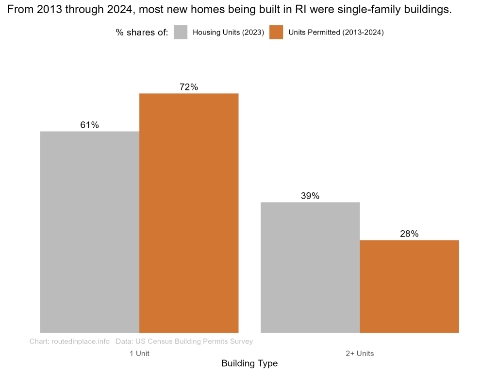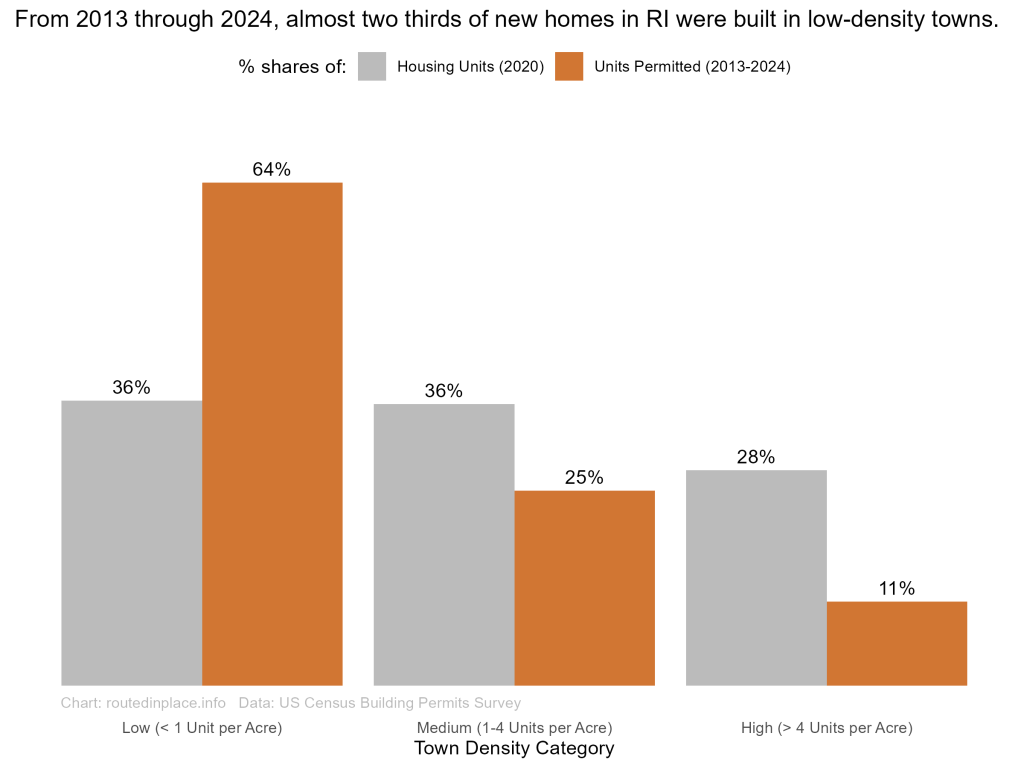 - For most of the past decade, RI has sprawled, with new housing units heavily focused in low-density towns and dominated by 1-unit buildings, continuing a pattern that dates back to at least the 1970s.