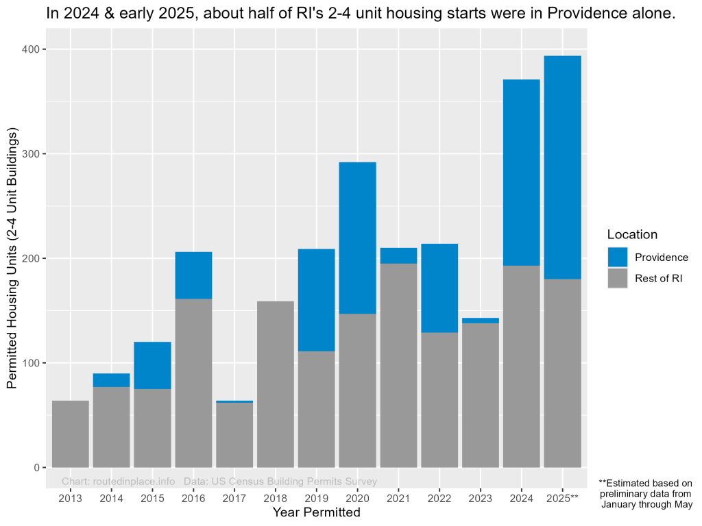 - An outsized portion of the new 2-4 unit building starts in RI are in the city of Providence, where small-scale residential construction activity on previously vacant lots has surged past pre-recession levels.